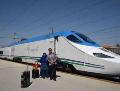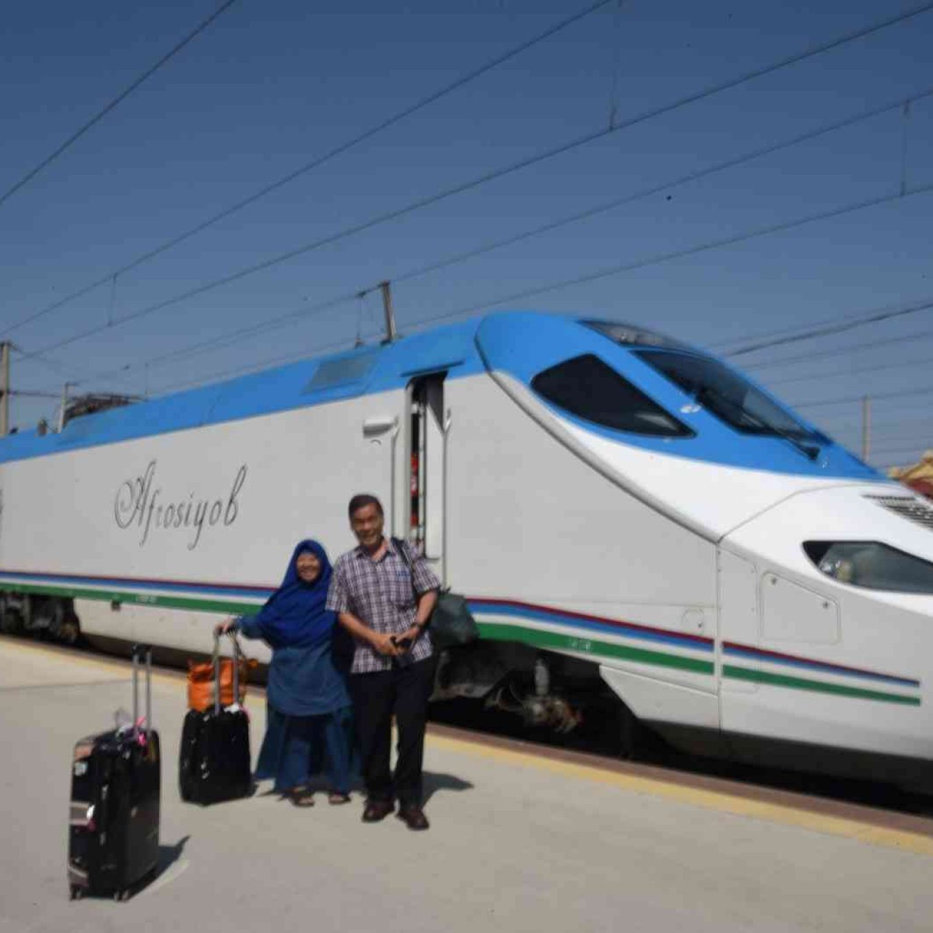 乘坐阿夫罗西约布高速列车从塔什干前往撒马尔罕